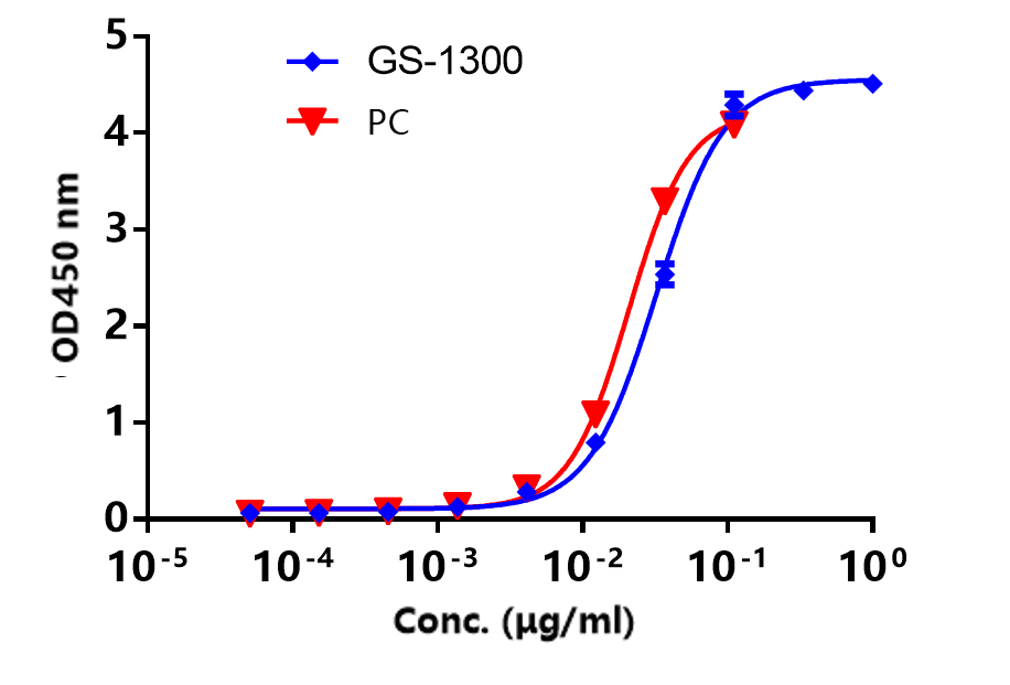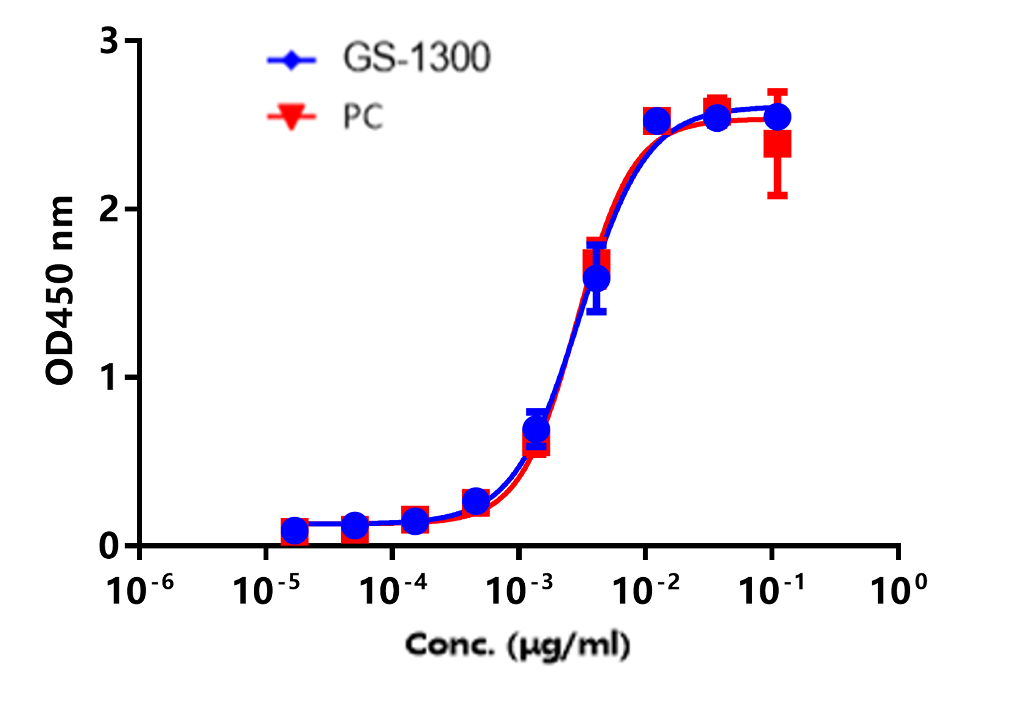 PC: 阳性对照(介质纯化样品); GS-1300: 用GenScript AmMag™ Quatro 1300纯化的样本;GS-手动:用GenScript磁珠(Cat# L00695)手动法纯化的样本。