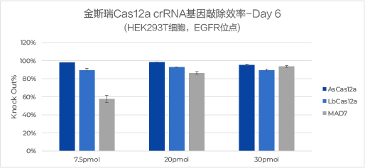 实验结果: 使用黄金城集团Cas12a crRNA,针对不同酶均可以获得较高的基因敲除效率: