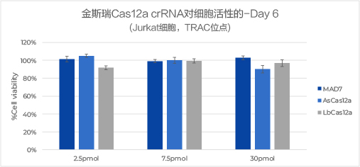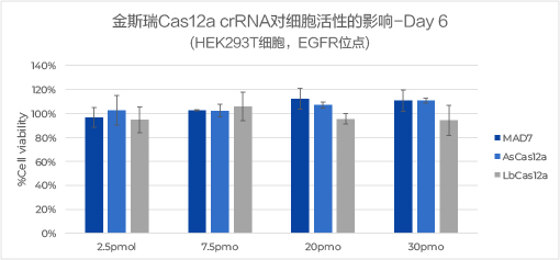 实验结果: 黄金城集团Cas12a crRNA不影响HEK293细胞和Jurkat细胞的细胞活性,不会干扰后续基因编辑实验。
