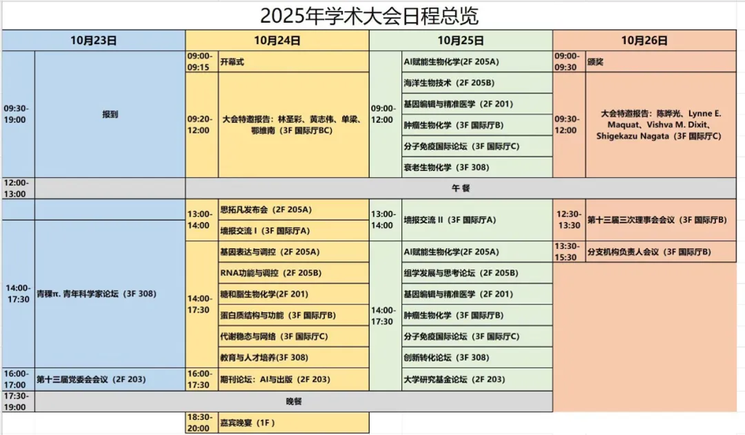 为促进我国生物化学与分子生物学领域专家的交流与合作,中国生物化学与分子生物学会2025年全国学术会议将于2025年10月23-26日在南昌召开。会议主题:变革中的生物化学。