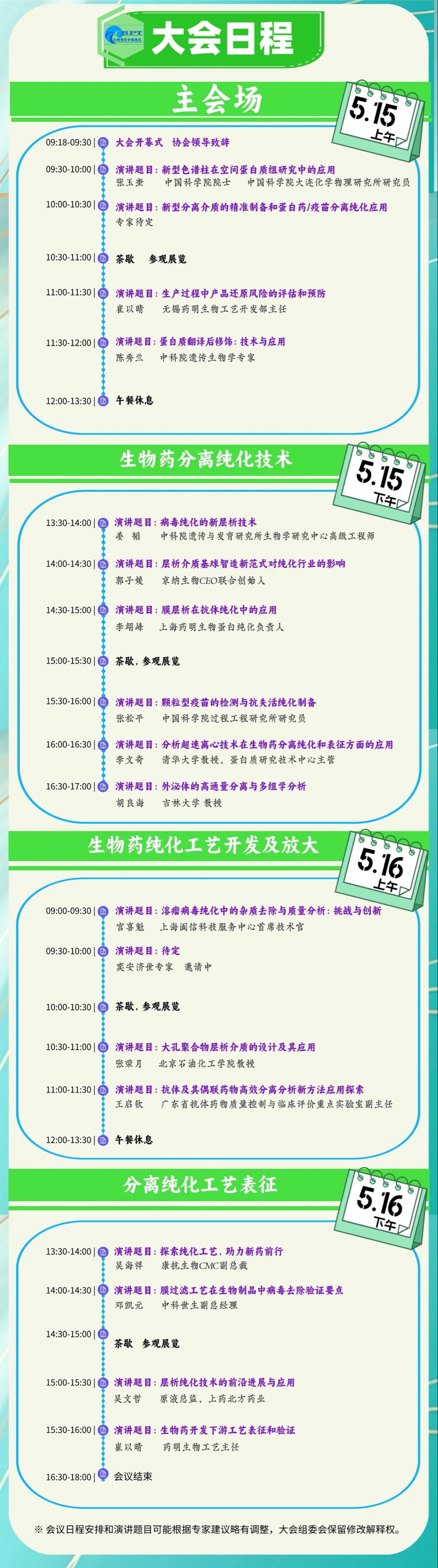 分离纯化大会已经成功举办了十二届。是生物医药分离纯化技术领域大规模、学术水平高、科研成果最新和专业性强的年度行业盛会,共计超过 30000 多名专业人士参加,对生物制药下游工艺和纯化技术的发展起到了重要的推动作用。本次大会得到了高新区,中检院,行业协会,园区头部企业和新型企业的大力支持。以“创新纯化技术,聚焦下游工艺”为主题。设立一个主会场,三个分会场,届时将有来自各生物制药企业研发及质量部门、高校科研院所、CRO/CMO企业等从事分离纯化的行业专家和厂商参会。